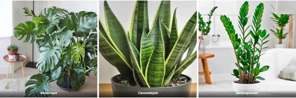 Заміокулькас та сансевієрія виживуть навіть там, де світла зовсім мало. Їм цілком вистачає лише кількох годин слабкого освітлення на день, тому це найкращий вибір для глибини кімнати або офісу.